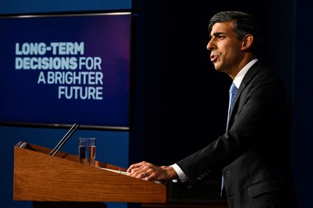 LONDON (Reuters) – Prime Minister Rishi Sunak watered down Britain’s plans to tackle climate change on Wednesday, saying he would delay a ban on sales of new petrol cars to maintain the consent of the British people in the switch to net zero.