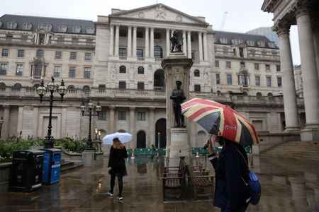 (Reuters) -London stocks ended lower on Thursday but trimmed losses earlier in the day after the Bank of England held interest rates steady, indicating an end to its rate-hike cycle but signalled that rates will remain higher for longer.
