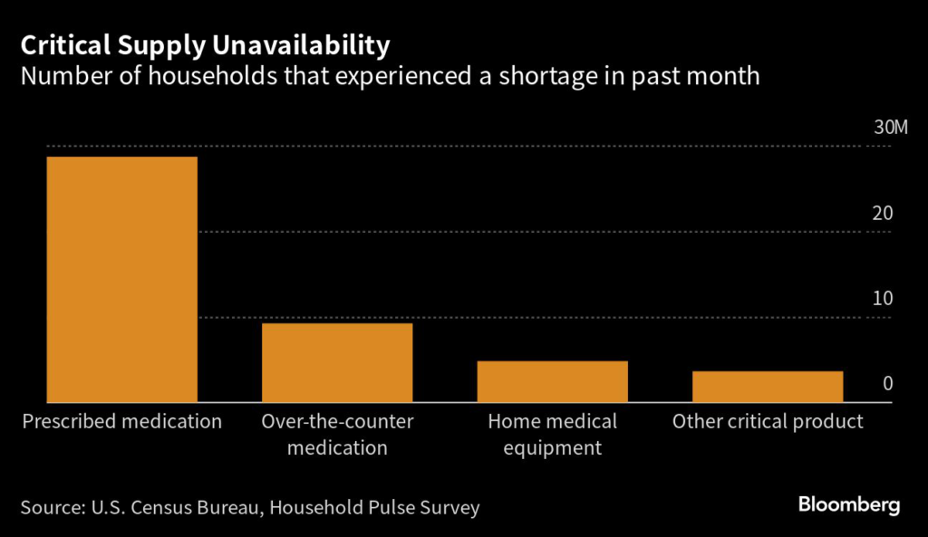 (Bloomberg) — Three years after the worst of Covid-era supply-chain disruptions, about one in six Americans adults are experiencing shortages of medications or other critical medical equipment, based on a Census Bureau survey.