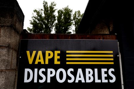 LONDON (Reuters) – British pharmacy chain Superdrug will stop selling single-use vapes, the company announced on Friday, citing the environmental impact caused by their disposal and the popularity of the products among young people.