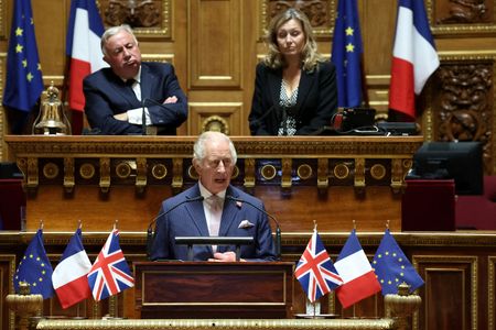 PARIS (Reuters) – King Charles underscored on Thursday the importance of the relationship between Britain and France and called for a renewed “Entente Cordiale” to tackle climate change, on the second day of a state visit to France.
