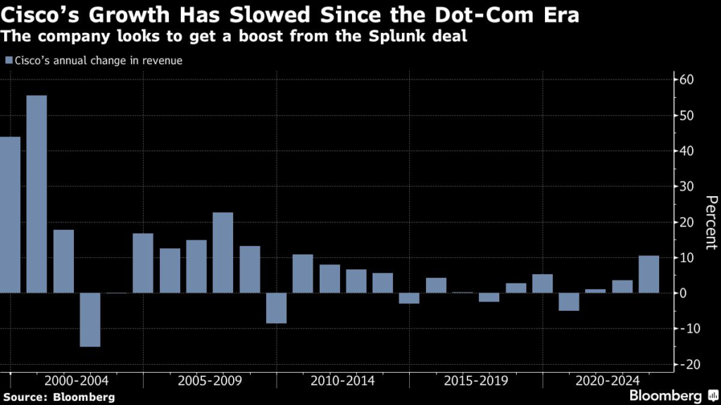 (Bloomberg) — Cisco Systems Inc.’s Chuck Robbins, who has spent years working to restore the networking company to its former glory, is now looking to the $28 billion acquisition of Splunk Inc.