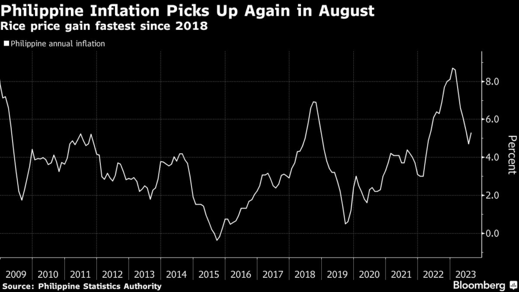 (Bloomberg) — The Philippine central bank has a “good chance” of resuming monetary tightening in November and may increase its benchmark interest rate further after that amid “relentless” supply shocks, Governor Eli Remolona said.