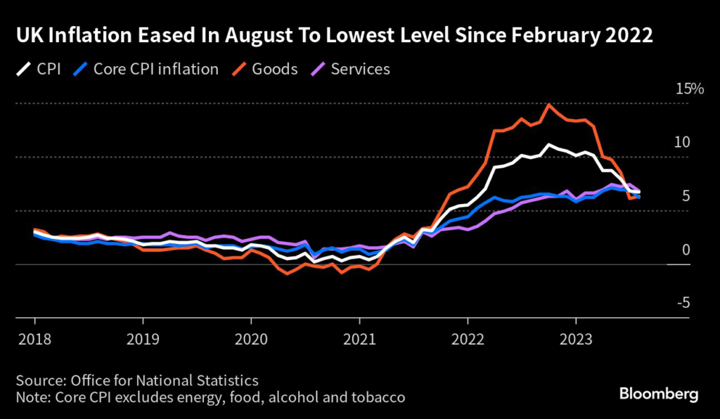 The Consumer Prices Index eased to 6.7% in August, well below the 7% or more the BOE and economists had anticipated.
