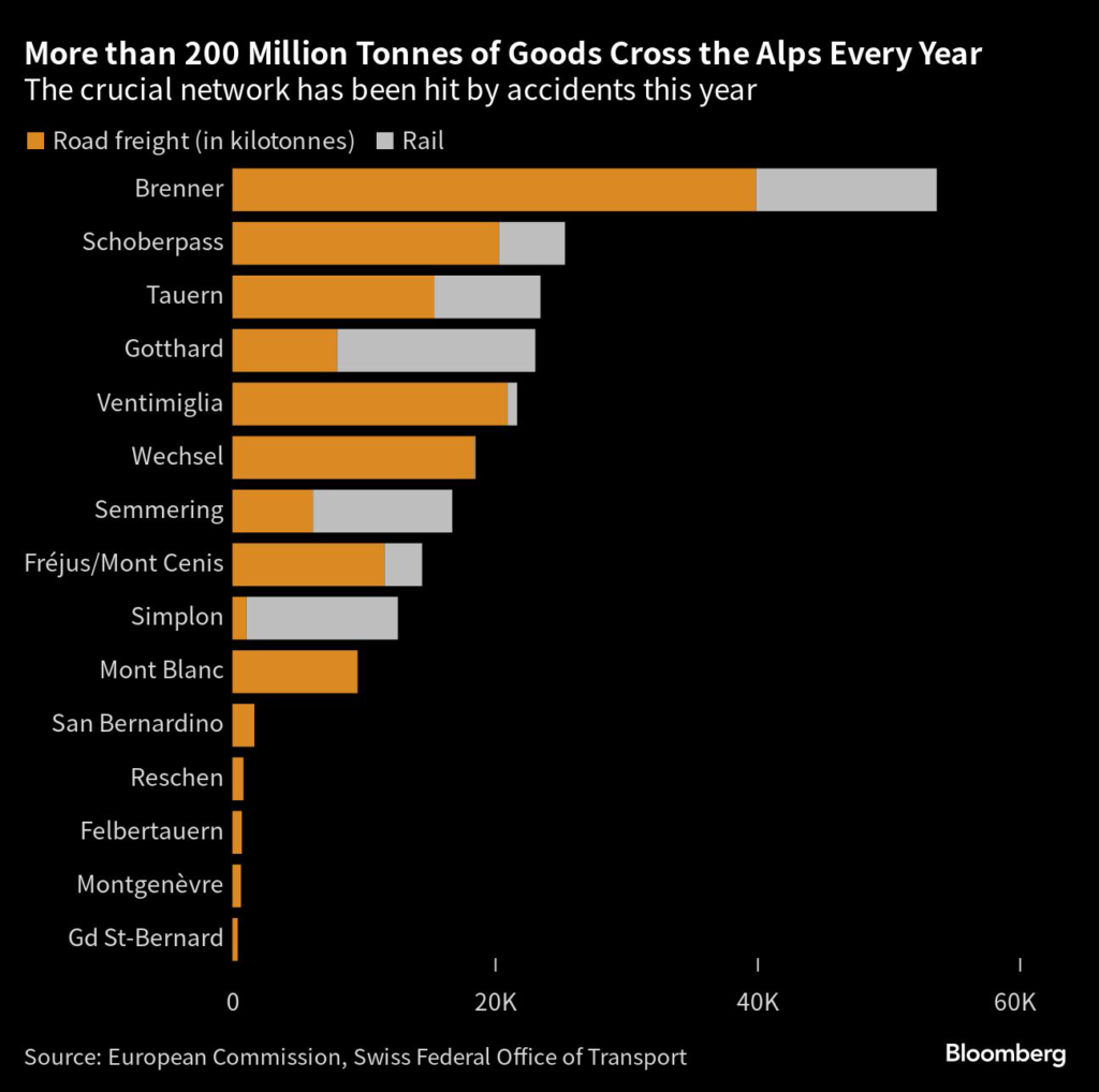 (Bloomberg) — When a landslide blocked an aging Alpine tunnel connecting Italy and France this summer, Livio Ambrogio knew what the fallout was going to be for his freight business: time and money.