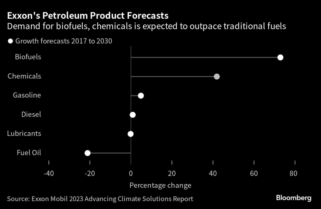 Over time, it’s open to cutting output of gasoline, the focus of the company’s refining business since Henry Ford introduced the Model T nearly 100 years ago. The goal is to produce more chemicals, found in everything from paint to plastic, for which there are few low-carbon alternatives.
