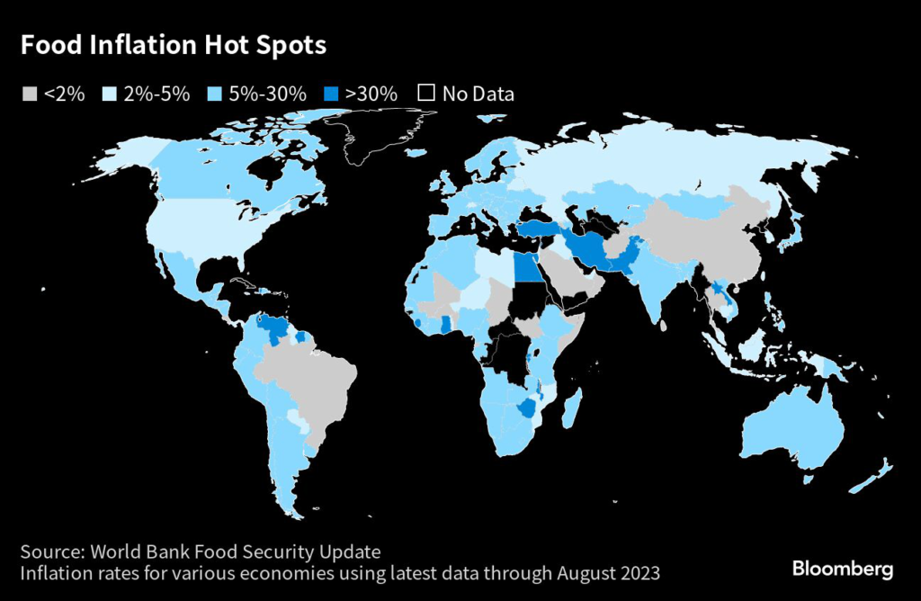 (Bloomberg) — Domestic food price inflation remains high, with people in Venezuela, Lebanon, Argentina, Turkey and Zimbabwe particularly hard hit, according to the World Bank.