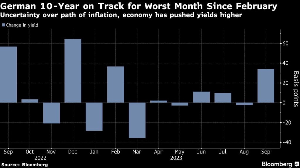(Bloomberg) — The European Central Bank’s message that interest rates will stay higher for longer is finally sinking in with the bond market.