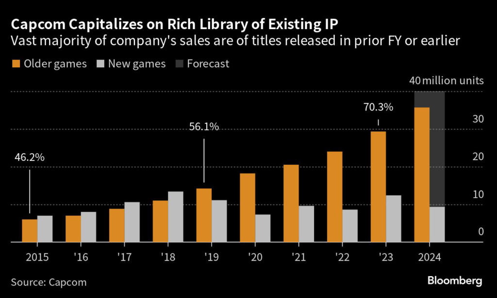 Capcom targets selling more than 100 million copies of games a year, with the majority to come from games released in past fiscal years.