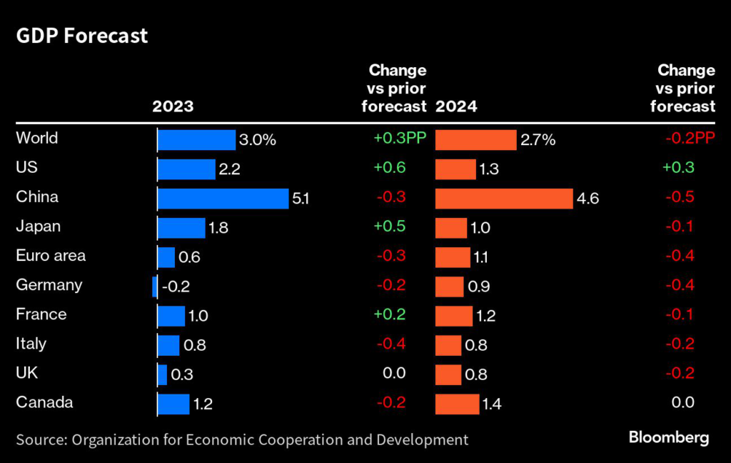 Worries about a possible liquidation of China Evergrande Group pushed property stocks there down by the most in nine months on Monday. Last week, the OECD cut its projection for the country’s gross domestic product, saying output probably won’t exceed 5% next year.