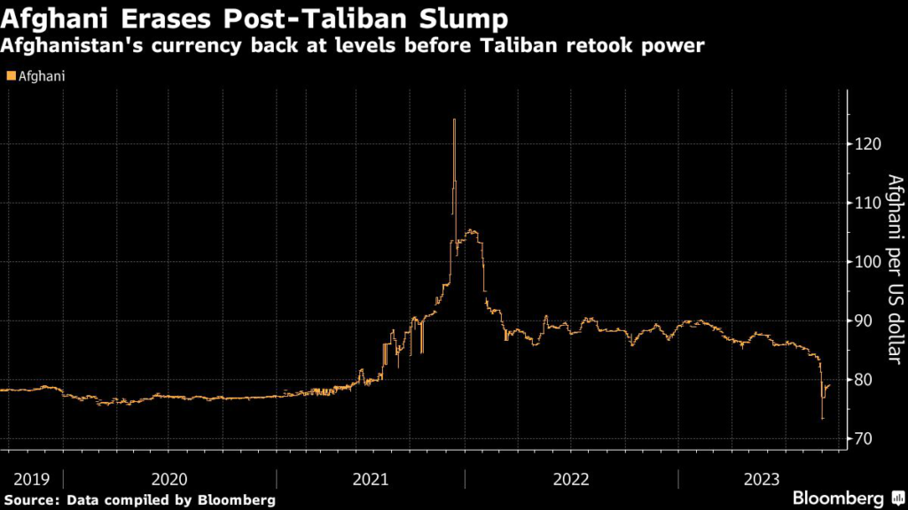 Yet the paring of the currency’s losses seen after regime change also belies the dramatic upheaval that persists on the ground with Afghanistan largely cut off from the global financial system because of sanctions.