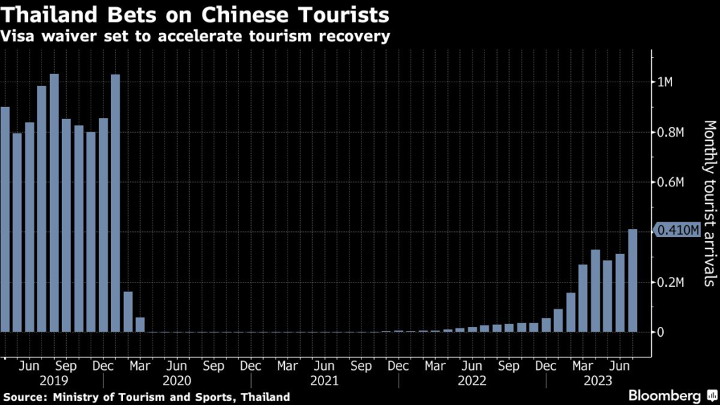 Srettha’s administration, which took power earlier this month, cleared visa exemptions for Chinese and Kazakh travelers for a five-month period as a way to lure more travelers during the busy holiday season.