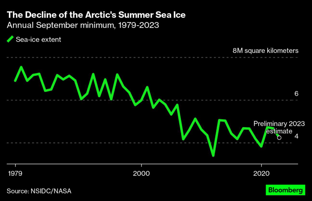 They showed that sea ice covered just 4.23 million square kilometers of the Arctic Ocean at its lowest point this summer. That’s the sixth lowest figure recorded, and the 17 lowest were all posted in the last 17 years.
