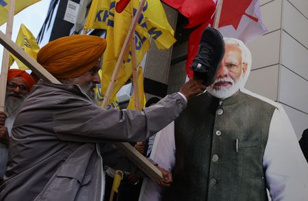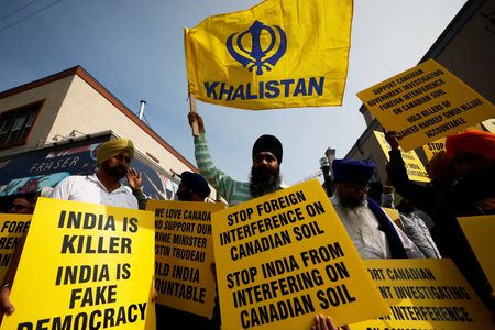 TORONTO/OTTAWA (Reuters) – Canadian Sikhs staged small protests outside India’s diplomatic missions on Monday, a week after Prime Minister Justin Trudeau said there may be a link between New Delhi and the murder of a Sikh separatist advocate in British Columbia.