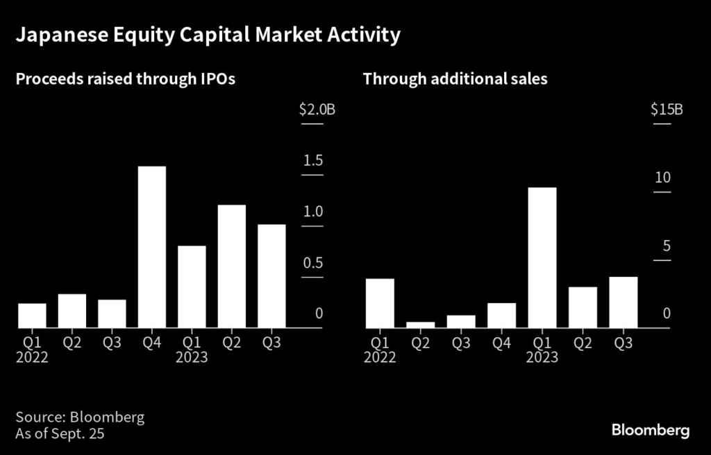 Proceeds from initial public offerings and additional share sales in Japan have reached more than $20 billion so far in 2023, an increase of 3.5 times compared with the same period last year.