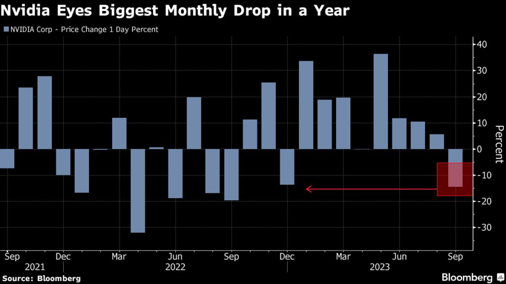 Still, Nvidia has fallen much more than the Nasdaq 100 Stock Index, which is down 5.4% this month.