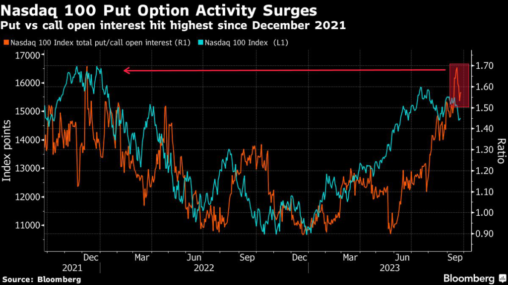 The bets against the tech sector reflect growing investor concern that interest rates will stay higher for longer.