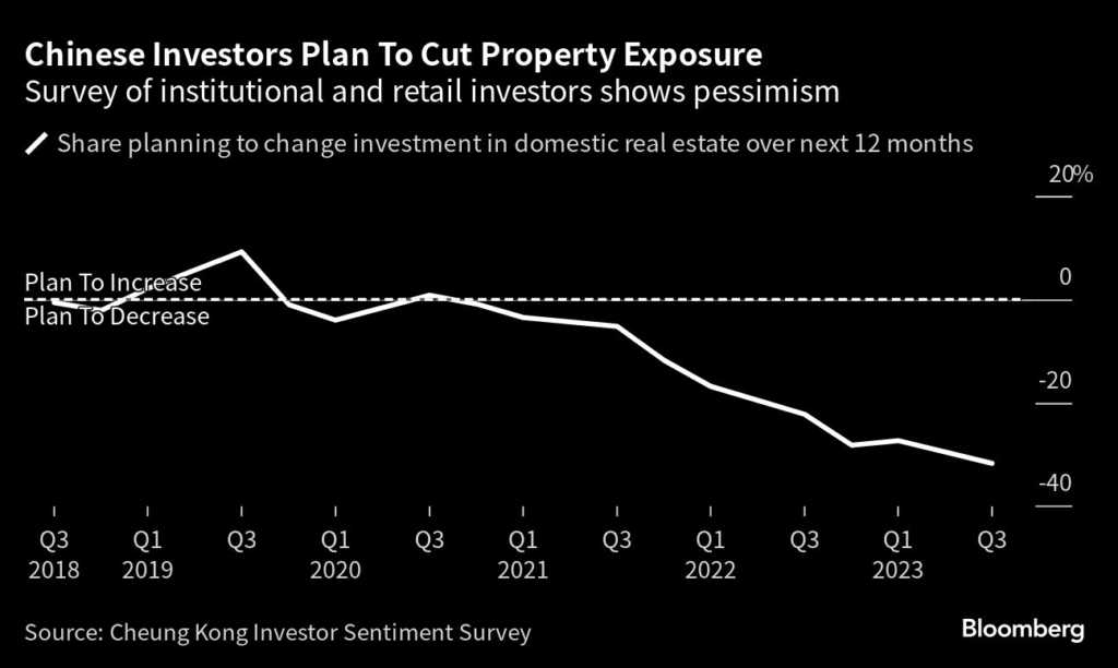 A record share of Chinese investors plan to cut their allocation in property over the next year, a new survey showed, underlining the difficulties Beijing is having breathing life back into the sector.