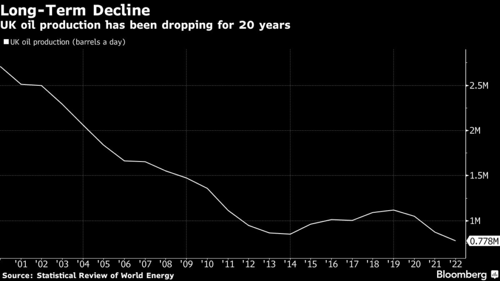 (Updates with chart of UK oil production)