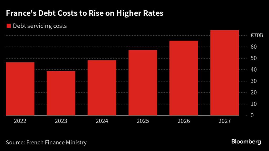 The government also predicts that higher interest rates will drive up the cost of financing debt to almost €75 billion in 2027 from less than €40 billion this year.