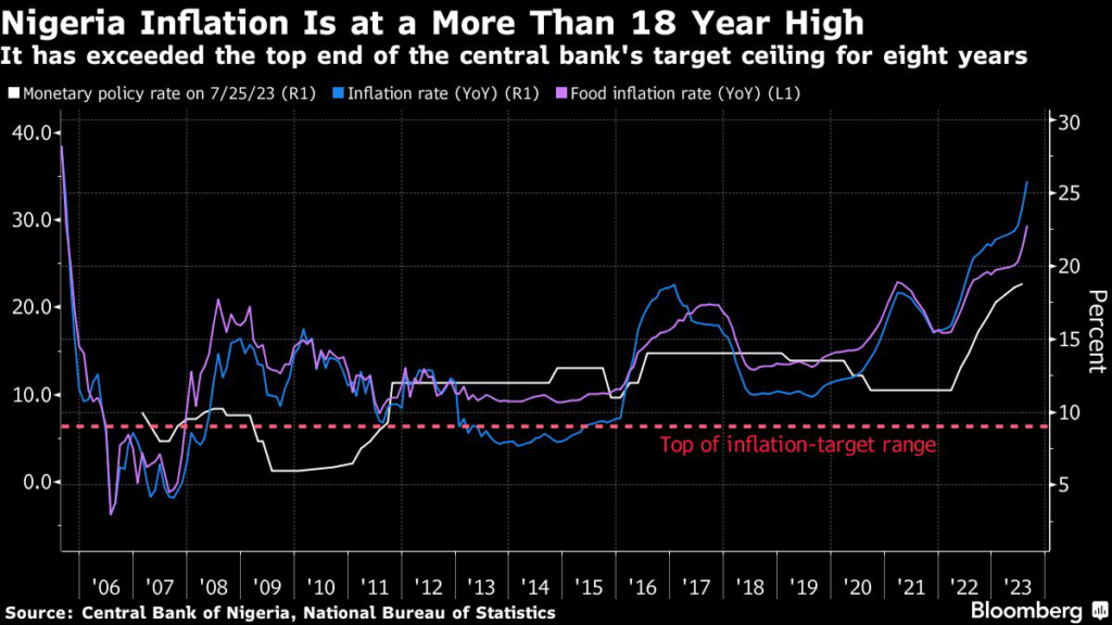 He’ll also need to quickly raise rates, which will pit him against his old friend Tinubu, who called for lower borrowing costs in his inaugural speech.