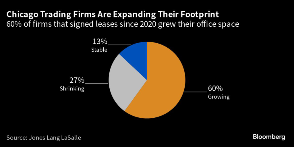 Chicago’s top trading firms are questioning their commitment to the city in the face of proposed taxes and rising crime. That’s not stopping some of them expanding their footprint.