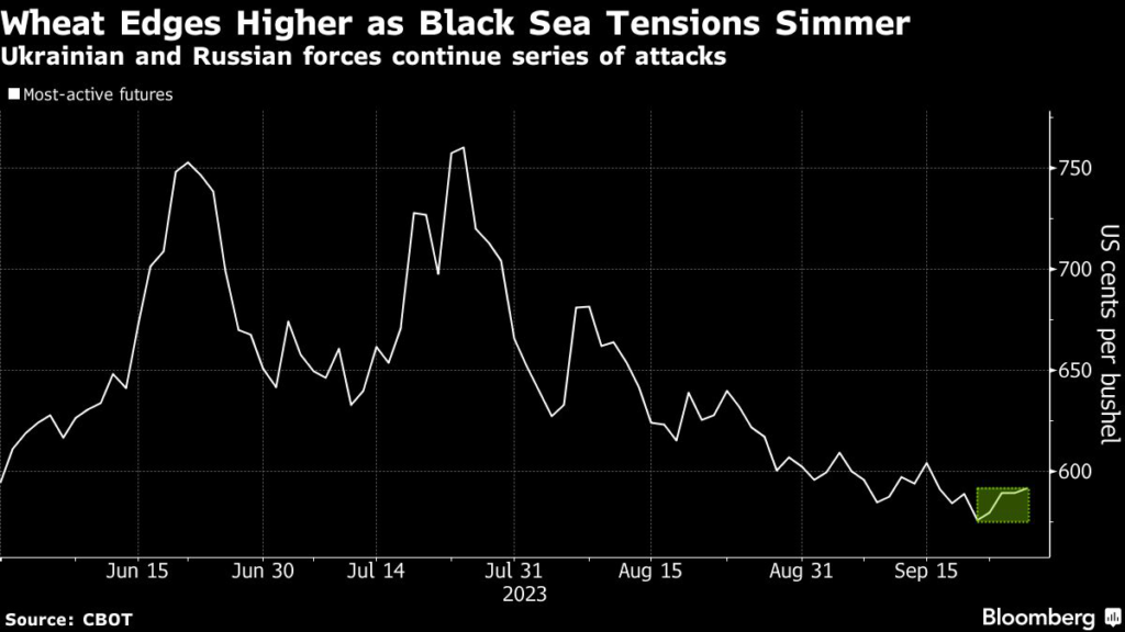 Wheat edged higher as traders weighed heightened tensions in the Black Sea against plentiful supplies, particularly from Russia.