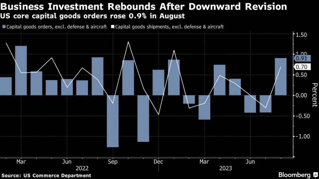 (Bloomberg) — Orders placed with US factories for business equipment rebounded in August, suggesting resilient investment despite elevated borrowing costs.