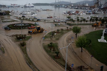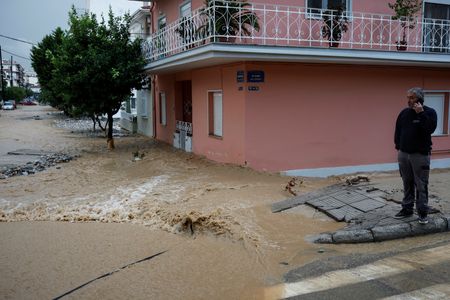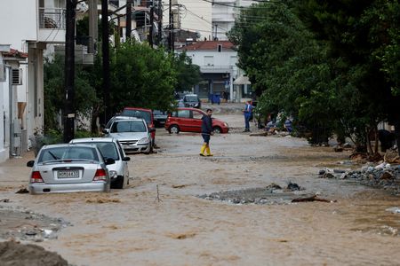 VOLOS, Greece (Reuters) – Torrential rain battered central Greece, flooding streets, homes and businesses in the city of Volos just three weeks after devastating Storm Daniel killed 16 people in the wider region.