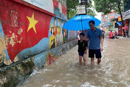 HANOI (Reuters) – Heavy rain from a tropical depression hit northern and north-central Vietnam, causing flooding that halted traffic in the capital Hanoi and sparked warnings of landslides on Thursday.