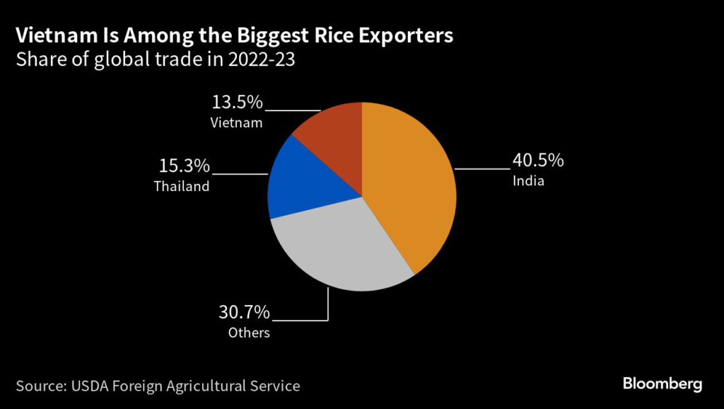 (Bloomberg) — Major rice exporter Vietnam has asked some farmers to plant their crop early on concerns about a water shortage, in part due to El Niño.