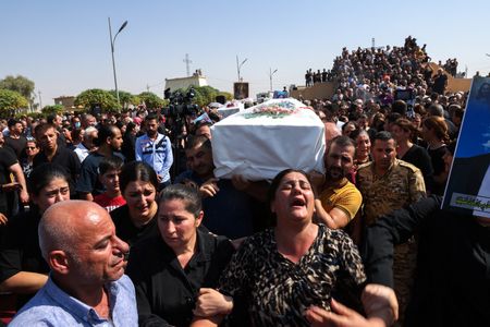 HAMDANIYA, Iraq (Reuters) – Calls for accountability grew on Thursday for the victims of a deadly fire at an Iraqi wedding celebration in a Christian town as grief-stricken mourners attended a packed memorial service and families buried their loved ones.
