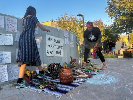 ESPANOLA, New Mexico (Reuters) – A New Mexico county halted the reinstallation of a 16th-century Spanish conquistador statue on Wednesday after protests over the return of the bronze figure, removed three years ago during nationwide anti-racism demonstrations.
