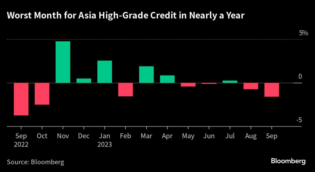 (Bloomberg) — Investment-grade corporate bonds in Asia outside Japan are set to post their worst performance in eleven months in September, hurt by high US interest rates, rising energy costs and China’s ailing economy.