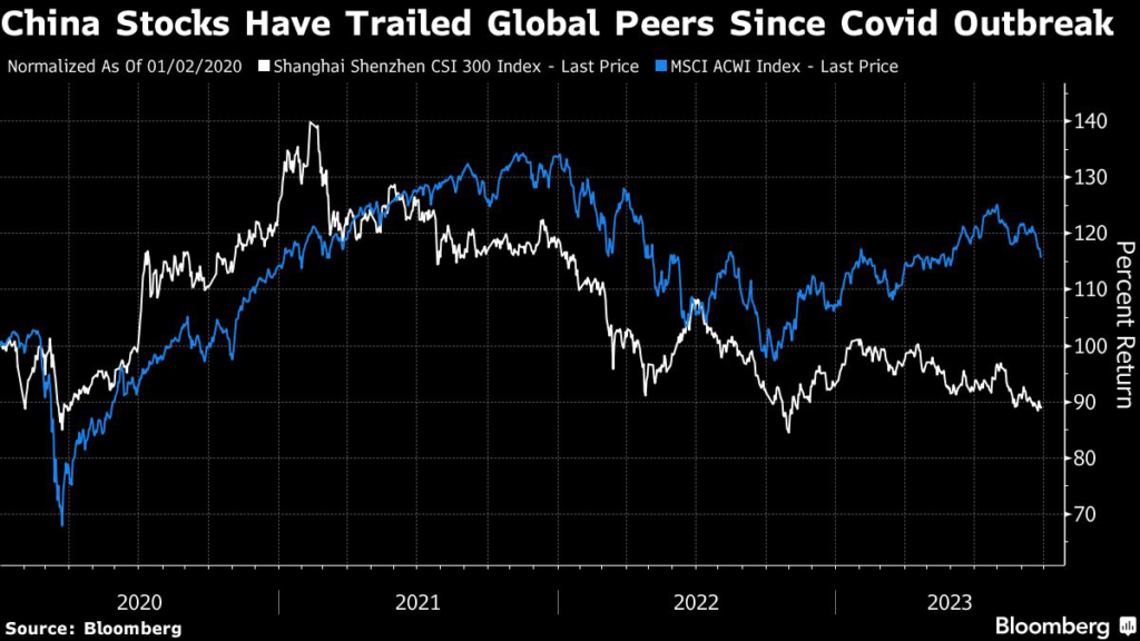 China stocks have been pummeled since early 2021 as the nation’s recovery from Covid has petered out and a rolling property crisis has derailed sentiment.