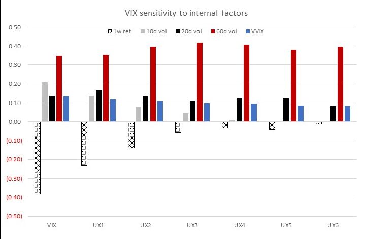 “We estimate the front of the VIX curve right in-line with market internals but room for futures to shift higher in a prolonged period of stress.”