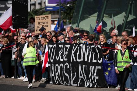 WARSAW (Reuters) – Hundreds of thousands of people held an opposition rally in Warsaw on Sunday, two weeks ahead of an election that the liberal Civic Platform (PO) says may decide Poland’s future in the European Union and its democratic standing.