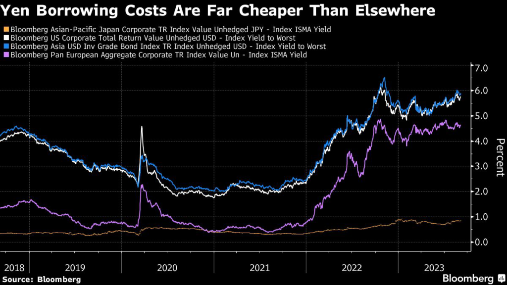 That would add to ¥12.7 trillion ($85 billion) of deals so far this year, the most for that period on record. In contrast, US investment-grade corporate bond issuance has fallen to the lowest in four years.