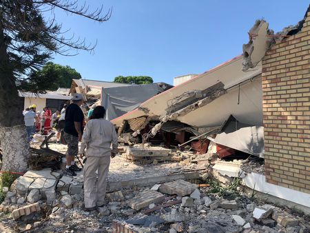 MEXICO CITY (Reuters) – A church roof collapsed during Sunday mass in a northern Mexican city killing at least nine people and injuring 40, authorities said, as rescuers worked into the night, desperately looking for another 30 people believed to be trapped under the rubble.