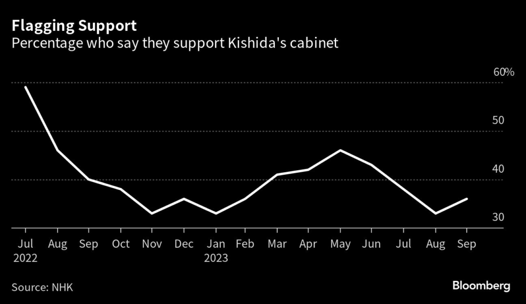 Now, with polls showing his support close to the lowest levels since he took the reins of the world’s third-largest economy, Kishida must decide on the timing of the next general election.