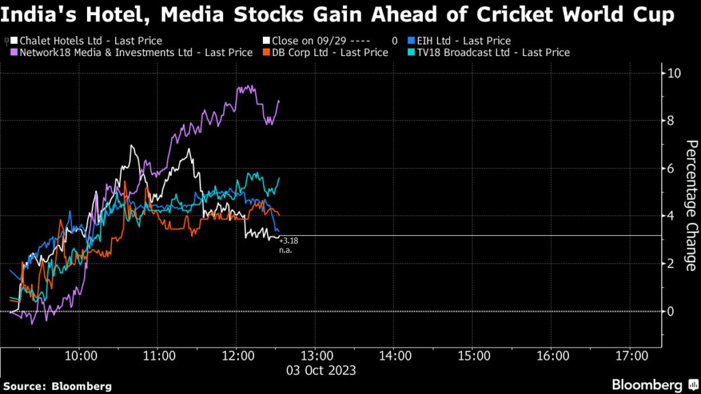 (Bloomberg) — A frenzy around the world’s most-watched cricket tournament is lifting India’s hotel and media stocks, thanks to soaring room rates and higher advertisement spend.