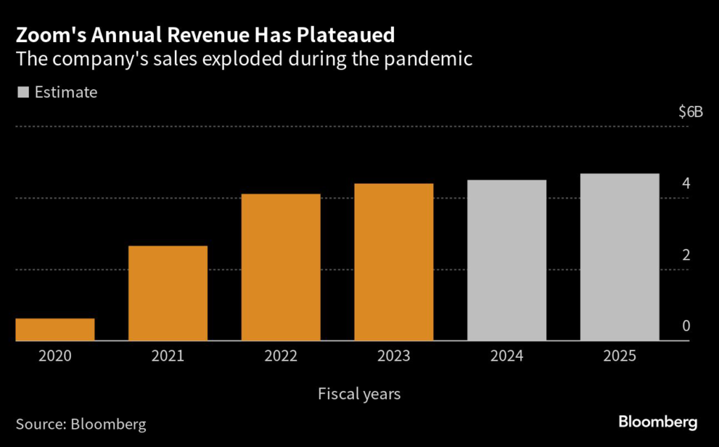 The company’s fiscal-year revenue jumped more than fivefold to $4.1 billion from 2020 to 2022 as Zoom became an essential tool during the pandemic.