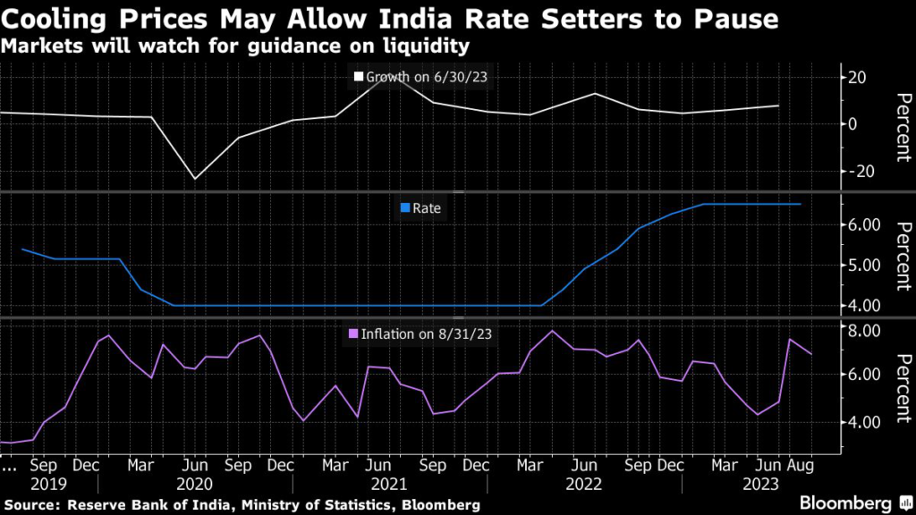 “With inflation still above the target, the RBI MPC is on course to maintain a hawkish pause in October, besides keeping liquidity tight,” said Radhika Rao, economist with DBS Group Holdings Ltd.