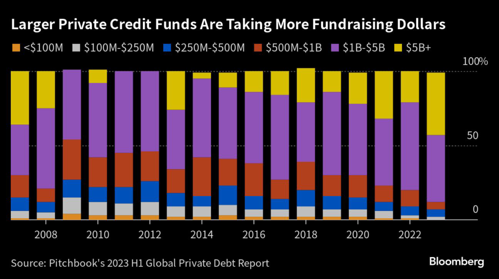 While fundraising in private credit has been resilient on the whole, investors’ preference for bigger, more established firms is putting sub-$5 billion outfits in a tight spot.