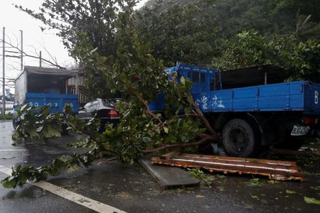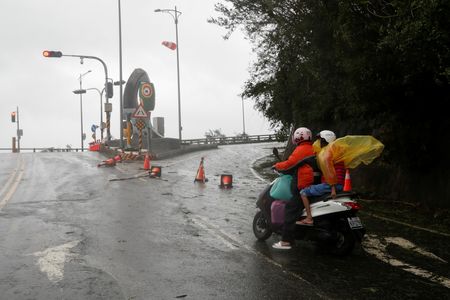 PINGTUNG, Taiwan (Reuters) -Typhoon Koinu brushed past southern Taiwan on Thursday, killing one person, injuring 304 and causing localised damage, as lashing rains and strong winds forced millions of people in a swathe of cities to miss work and school.