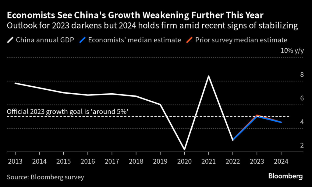The most recent poll of economists by Bloomberg showed a median forecast for growth of 5% for the year.