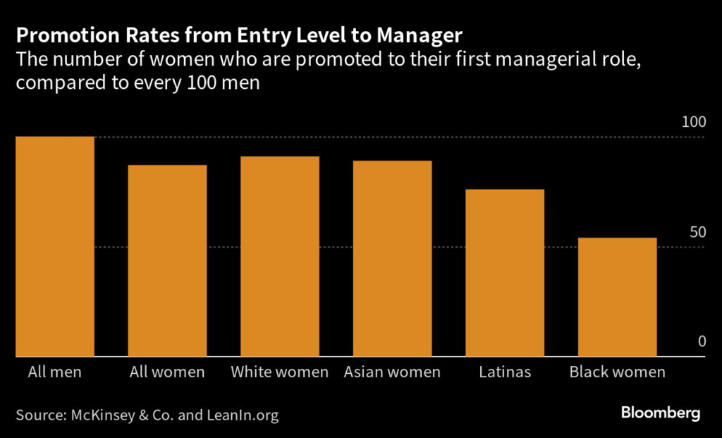The numbers are even worse for Black women, who are being promoted at the lowest rate in at least five years compared with men.