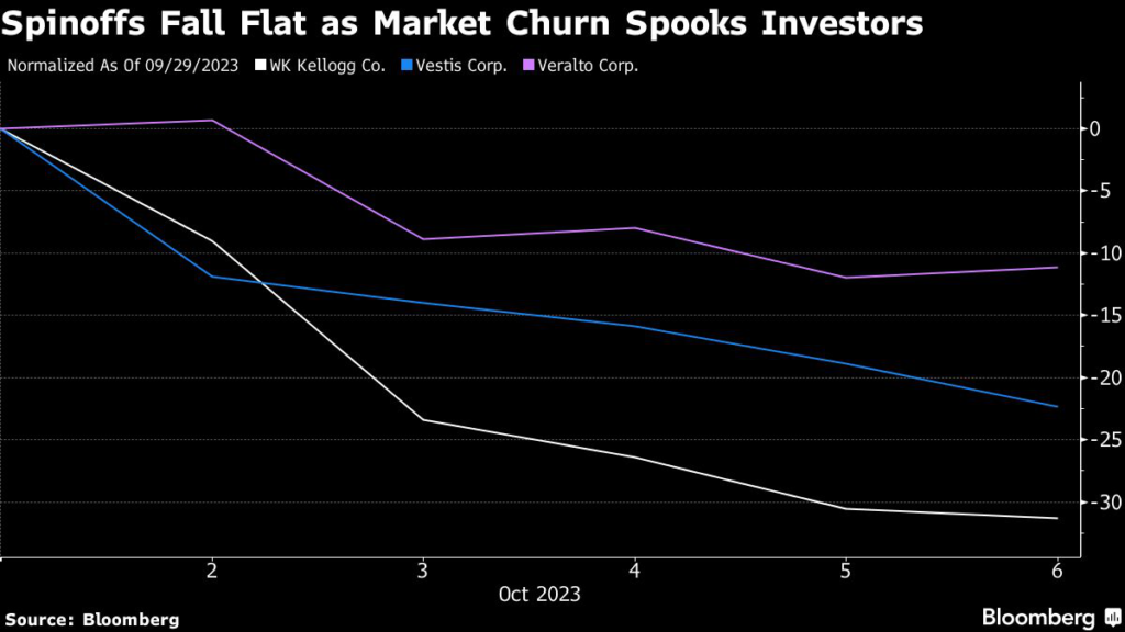 (Bloomberg) — A group of highly-anticipated spinoffs stumbled out of the gate this week as a wave of selling across the market took a heavy toll on household names.