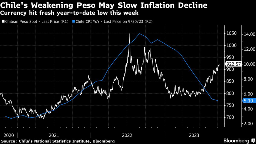 “The impact from the recent depreciation will be felt more strongly in the final months of the year,” Jorge Selaive, chief economist at Scotiabank Chile, posted on X, the platform formally known as Twitter.
