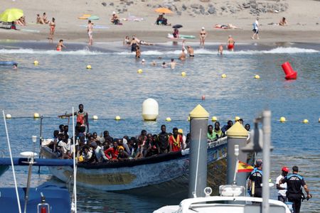 MADRID (Reuters) – Spanish coast guards rescued 262 migrants in three boats trying to reach the Canary Islands in the early hours on Friday amid a surge in crossings, just as European leaders were meeting in Spain to look for ways to avoid a new migration crisis.
